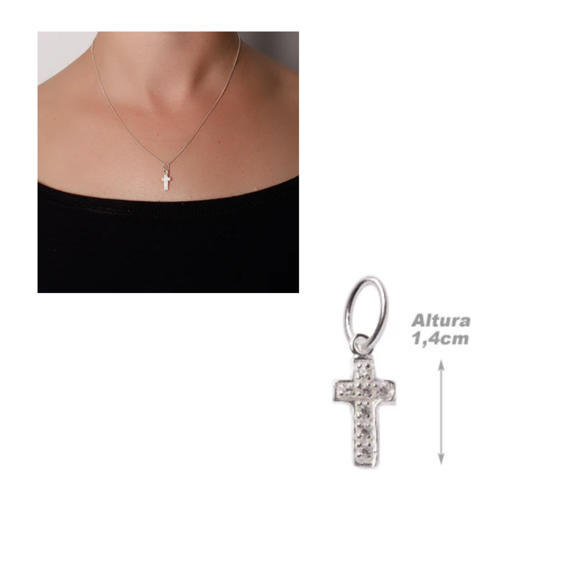 Pingente Cruz Prata 1cm Strass – Ref. 50505