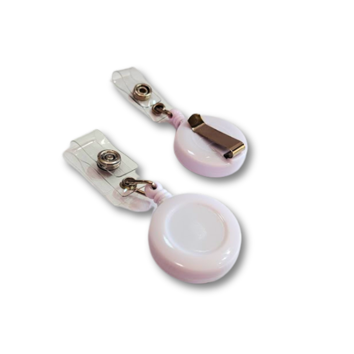 Porta crachá retrátil com cordão de nylon resistente e mosquetão para fixação segura. Leve e portátil, ideal para uso profissional e eventos.