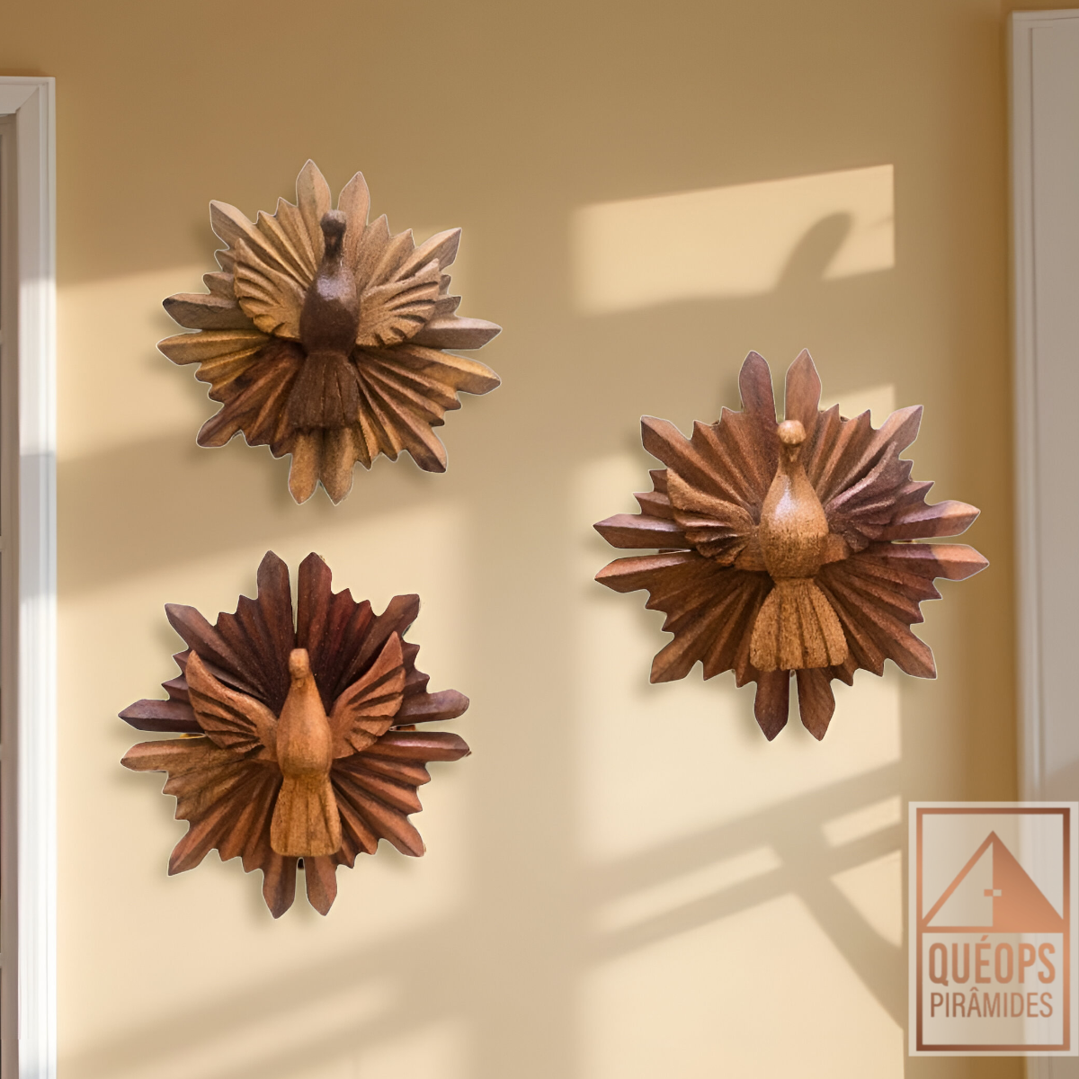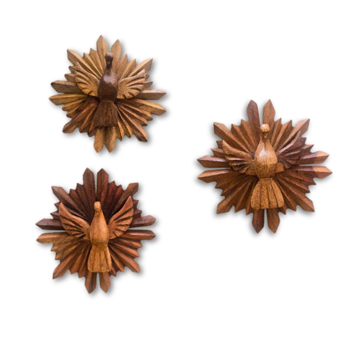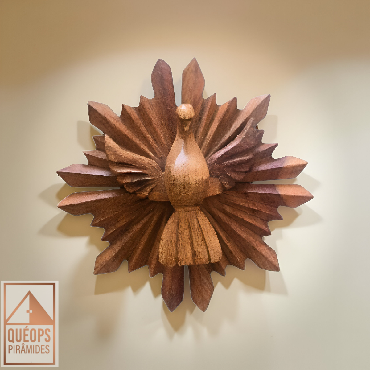 Lindíssimo Espírito Santo em madeira Jacarandá, com excelente acabamento e trabalho artesanal de alta qualidade. Peça feita com cuidado e precisão, ideal para decoração e espaços de meditação.