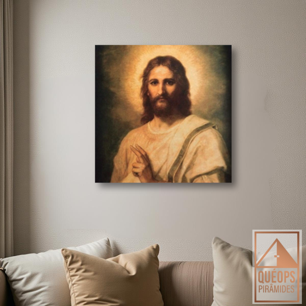Imagem de Cristo impressa em alta definição sobre tecido canvas, proporcionando textura e aparência de pintura clássica. Versátil e de fácil manuseio, pode ser emoldurado. Enrolado para transporte seguro via correio, transportadora e avião. Ideal para ambientes contemplativos e de reflexão.