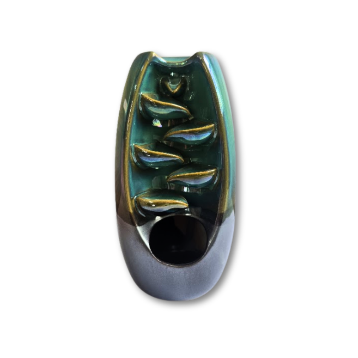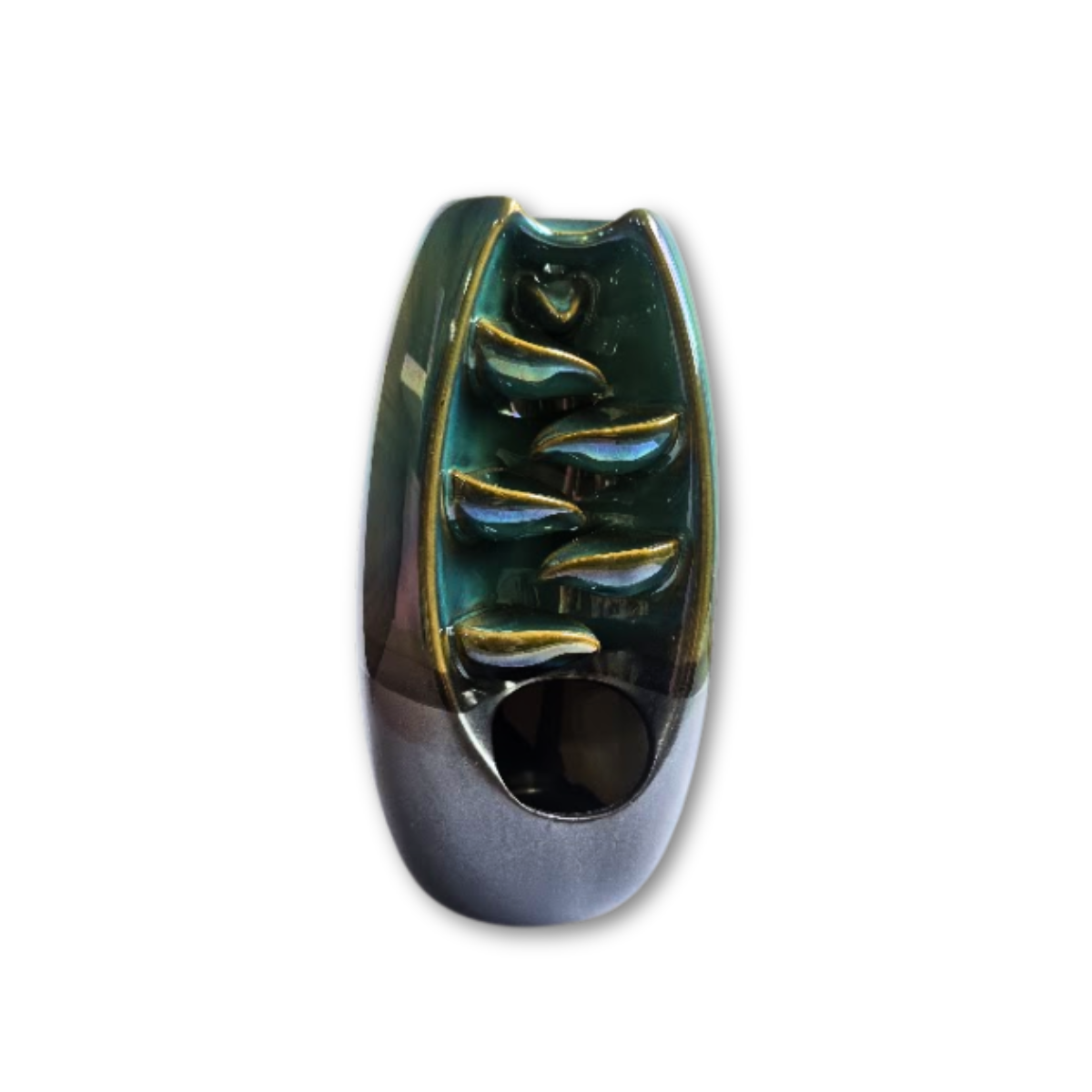 O Incensário Cascata Oval M cria um efeito único de cascata perfumada. Para esse efeito, é necessário utilizar um incenso cone específico, diferente dos tradicionais de vareta.