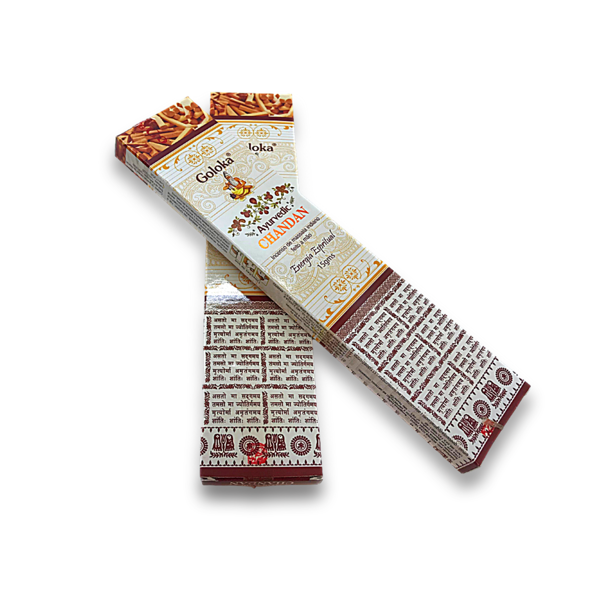 O incenso Chandan, feito com sândalo de alta qualidade, possui uma fragrância refrescante e purificadora, ideal para meditação e práticas espirituais. Seu aroma suave e pacificador ajuda a criar um ambiente sereno, favorecendo a conexão com o eu interior e a expansão da consciência.