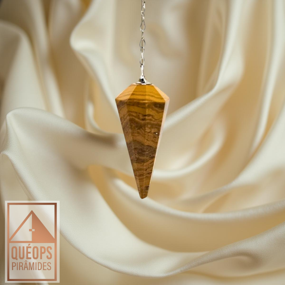 Pêndulo Jaspe Amarelo, Formato Ponta, com Corrente